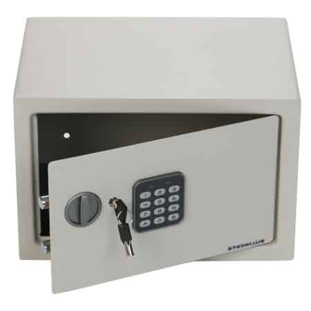 Seif din otel cu inchidere electronica si cheie Steinhaus, 230x350x250 mm, crem